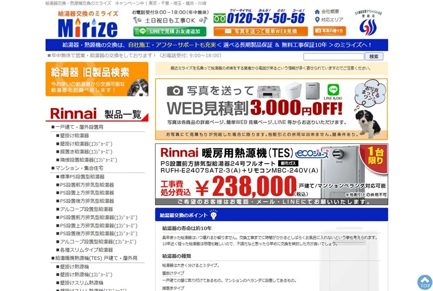 土日祝日問わず受付しており、急な給湯器トラブルにも対処してもらえます。